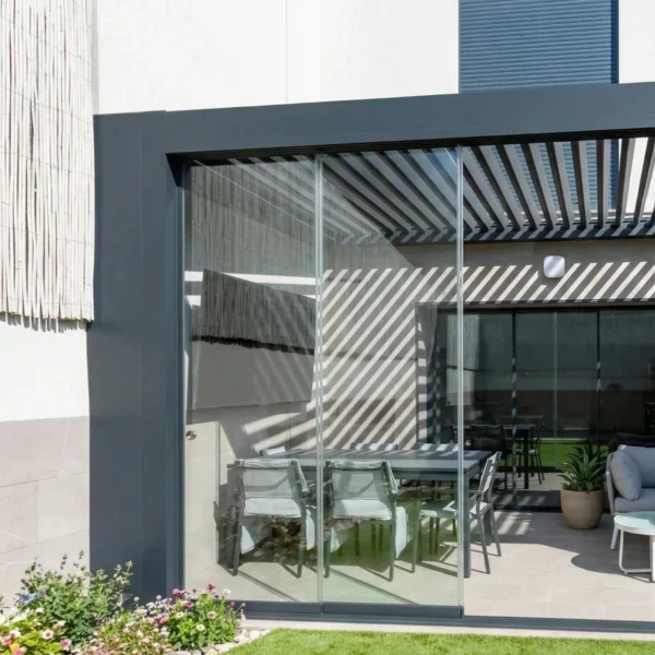 A diferencia de otros sistemas que requieren un proceso de apertura hoja por hoja, el sistema de corredera permite un acceso rápido, intuitivo y, sobre todo, un aprovechamiento total del espacio de tu terraza o porche.